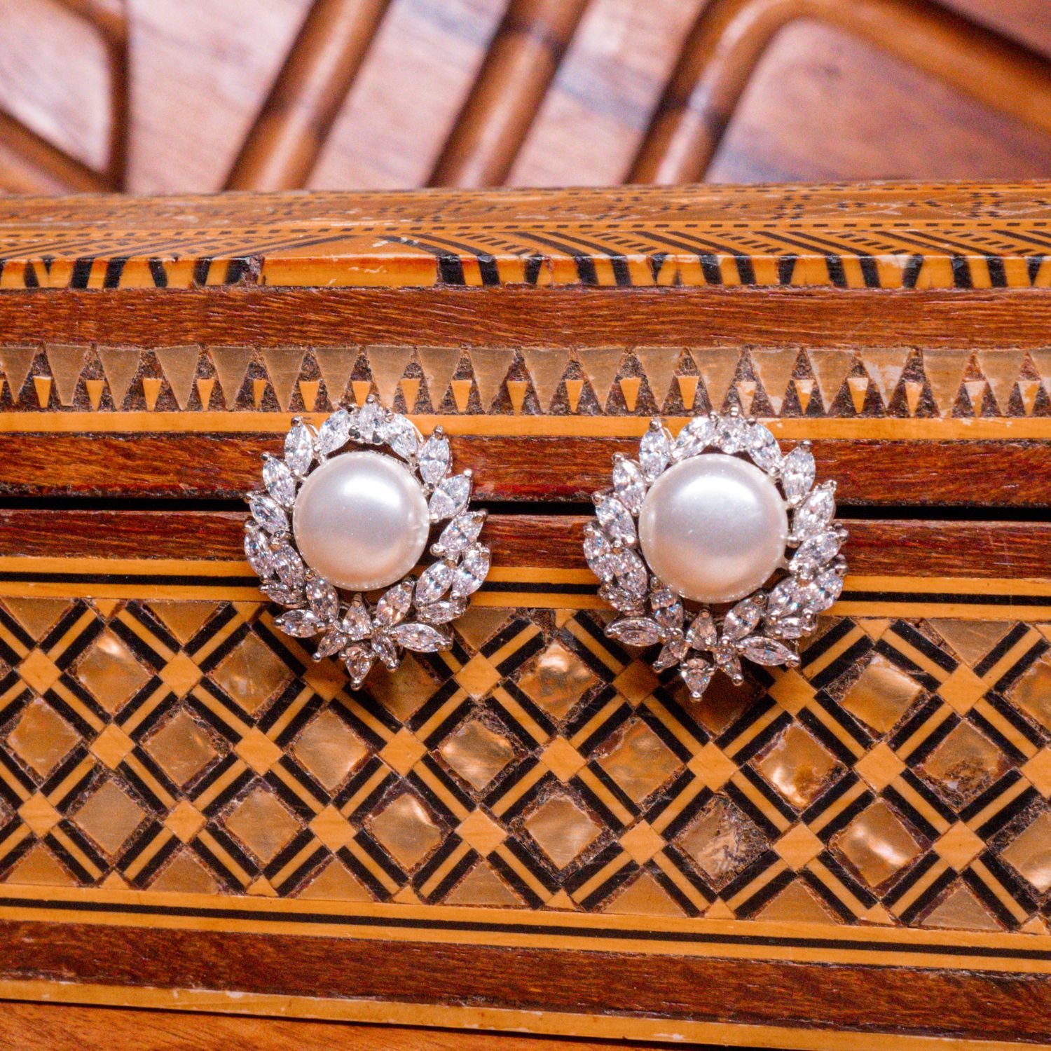Radiate classic elegance with our Lumina Pearl Studs. These earrings feature a brilliant, luminous pearl at the center, surrounded by a delicate starburst halo of sparkling simulated diamonds. Expertly set in 925 Sterling Silver, they offer a timeless and refined look, perfect for a wedding, a formal event, or simply adding a touch of grace to your everyday attire.